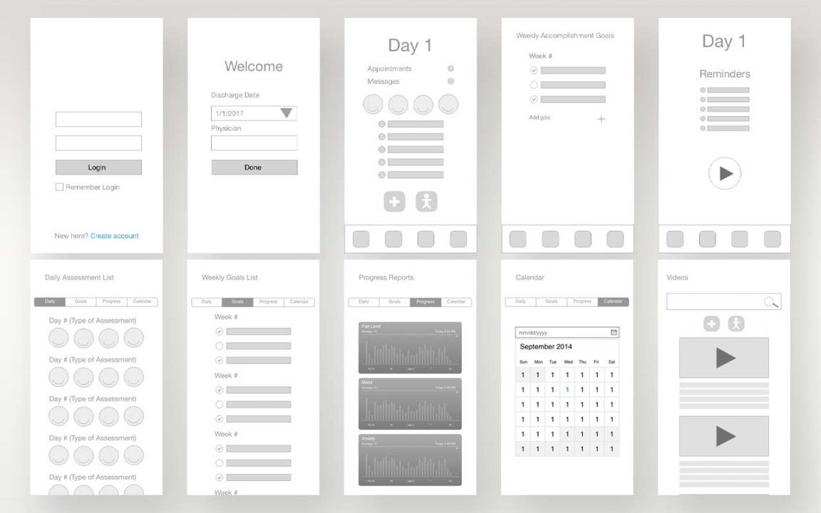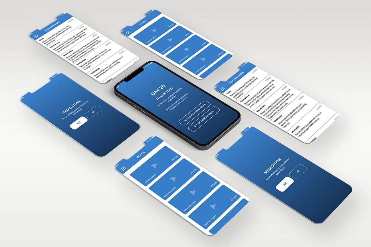 UX/UI design of mobile application for recovering burn patients. Early features included: daily recovery progress evaluations, access to video-based physical therapy and wound care instructions, medication reminders, progress summary reports, and more.